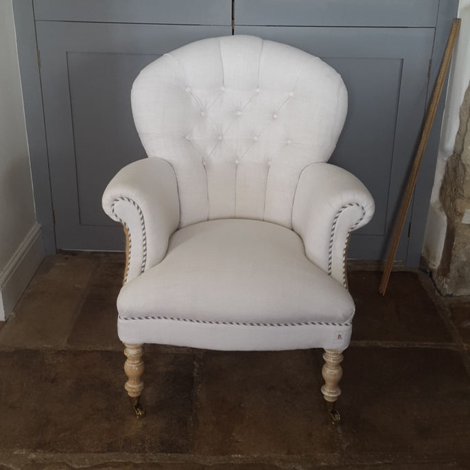 Occasionally we meet a piece of furniture at an auction or an antiques fair that is utterly irresistible. We will restore these to their former glory; sometimes to calico or sometimes we have the perfect fabric for it. Have a look in the shop to see what's available.